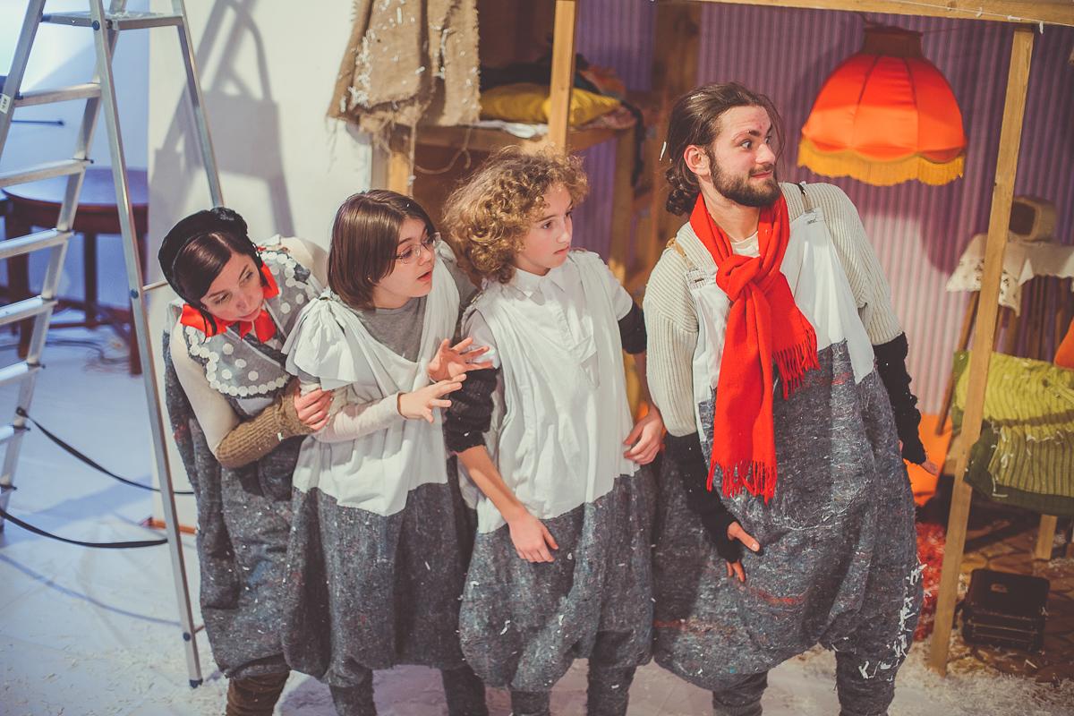 Зрители рассаживаются и начинается спектакль, в котором, благодаря камерной обстановке, актерам легко взаимодействовать со зрителями. И зрители смогут сыграть кнюттов, пришедших посмотреть на необычную рождественскую ель семейства муми-троллей.